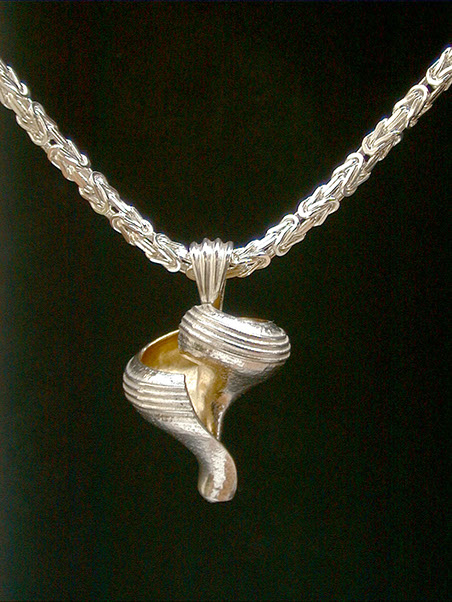 Conchiglie Pendant. Sterling silver with gold leaf, and chain. c. 1994.