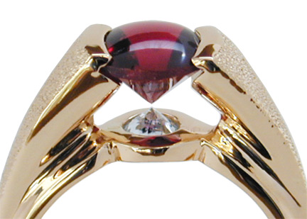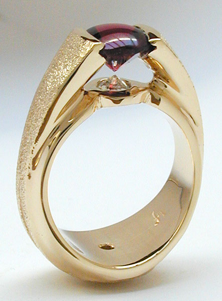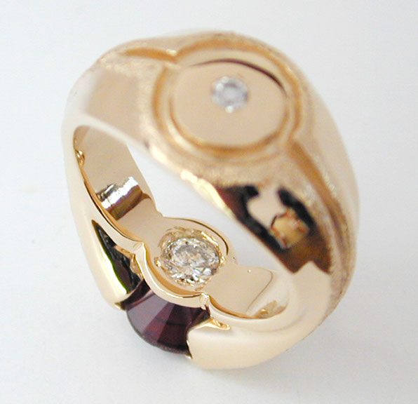 Gold, Anthill Garnet, Diamond Ring with inside mounted diamond. c.1996. From ring bottom.