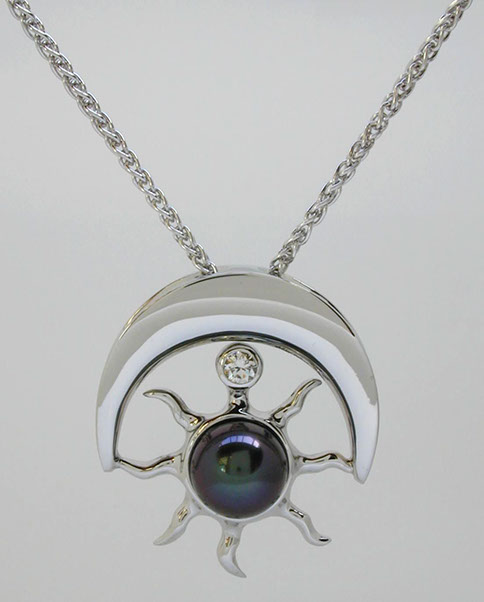Platinum Pendant with chain. Black pearl and diamond. c.2001.