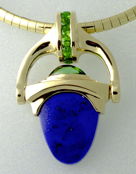 Lapis, Gold ,Tsavorite, Tourmaline, and Diamond Pendant with Chain. c.2006.