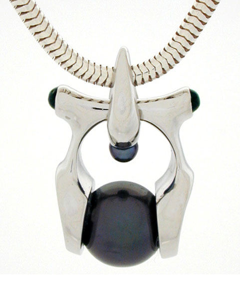 White Gold Pendant with black pearls, tourmaline and chain. c. 2001.