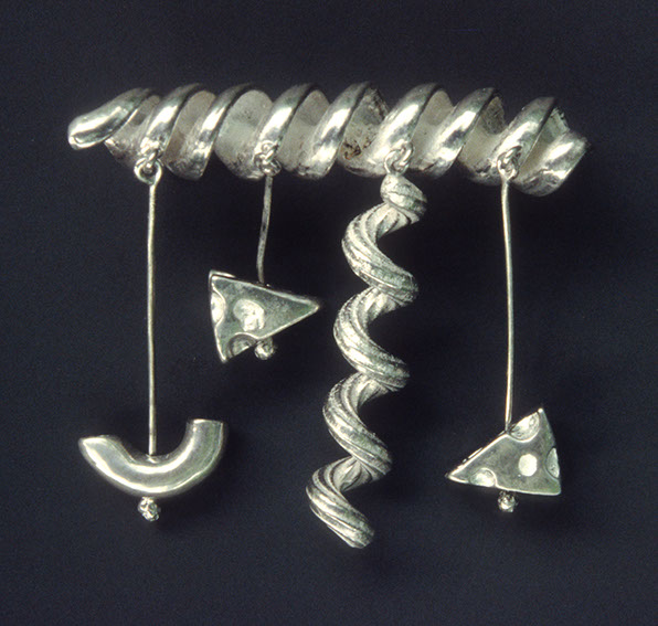 Pasta Brooch. Sterling silver. Based on historical war metals. c.1994.