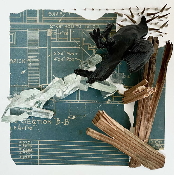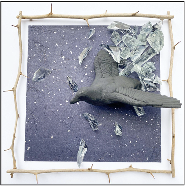 Fracture, Wood, Glass, Osage Orange Thorns, 3-D Printed Object, Blueprint, 2022