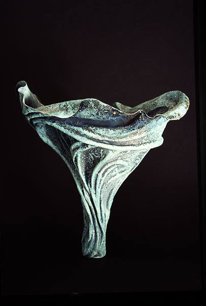 Formed patinated bronze vessel, 1992, 20 inches high