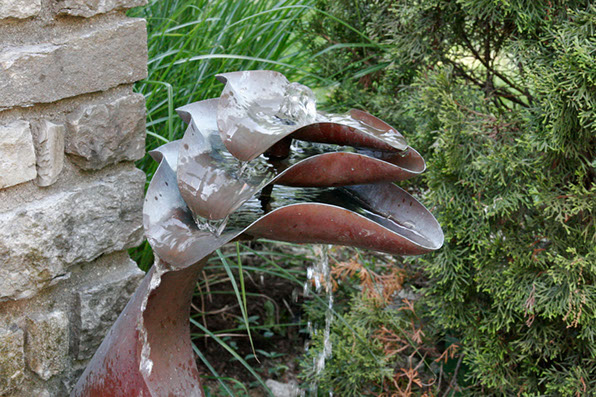 Granite and bronze fountain, 1978. Detail of bronze bowls.