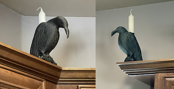 Site Specific Vulture Installation in Kitchen: Watch What You Eat, 3-D Printed Objects with Bees Wax Candles, 2023